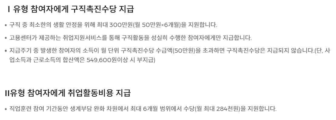 II유형은 ‘취업활동비용’과 ‘취업지원서비스’를 제공받습니다.