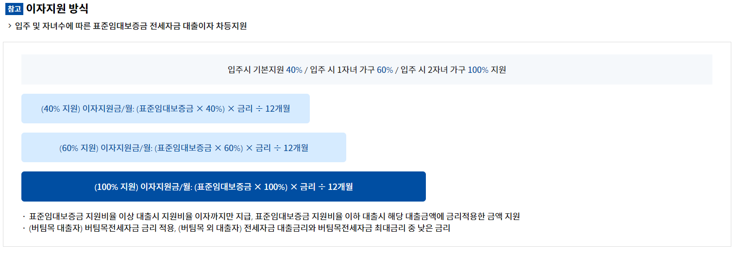 전세자금 대출자에게 표준임대보증금 대출이자를 지원해 주는 사업입니다.