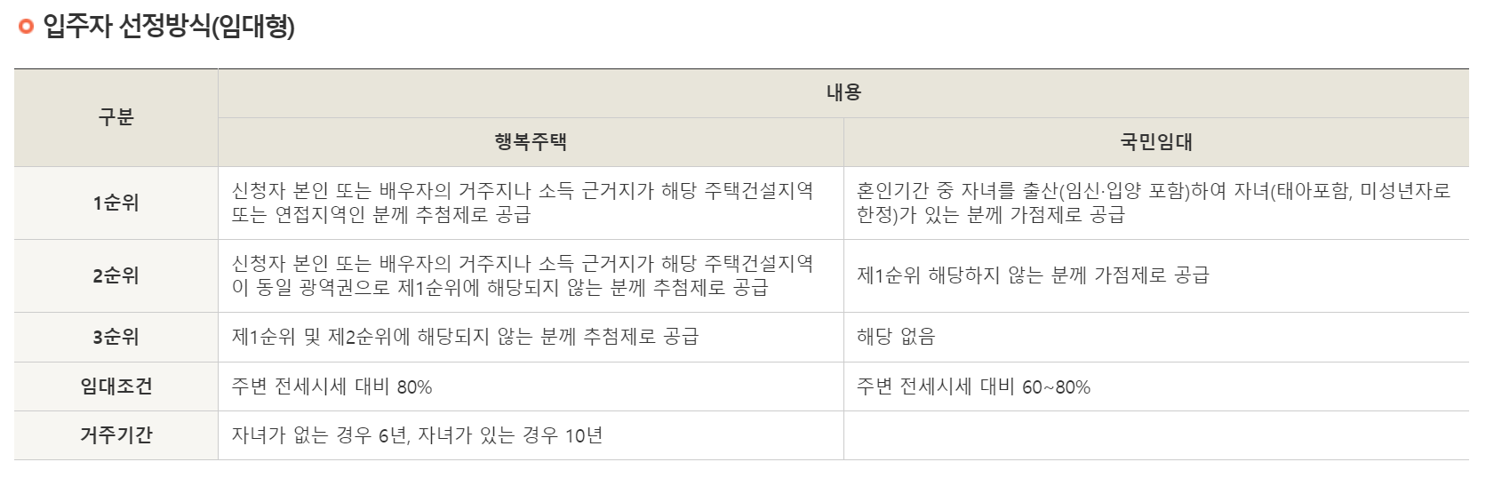 입주자 선정방식