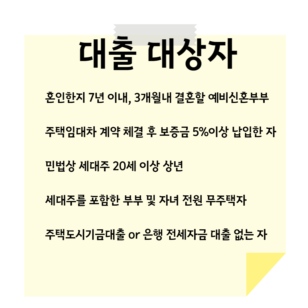 혼인한지 7년 이내이거나 3개월 내 결혼할 예비 신혼부부면 가능합니다.