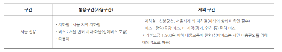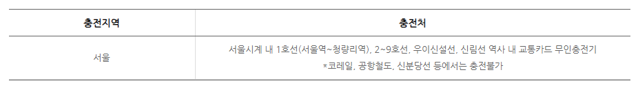 또한, 서울권의 신분당선의 경우는 사용이 붉가능하다고 합니다. 민자노선이기 때문에 적용이 안된다고 하는군요.