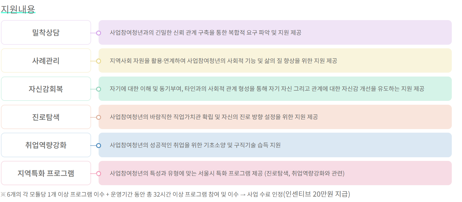 * 지역특화 예시 : 보호시설(보육원, 보호관찰소 등) 독립 후 개인적 사정 등으로 국민취업지원제도 등 취업지원서비스 참여가 어려운 청년,