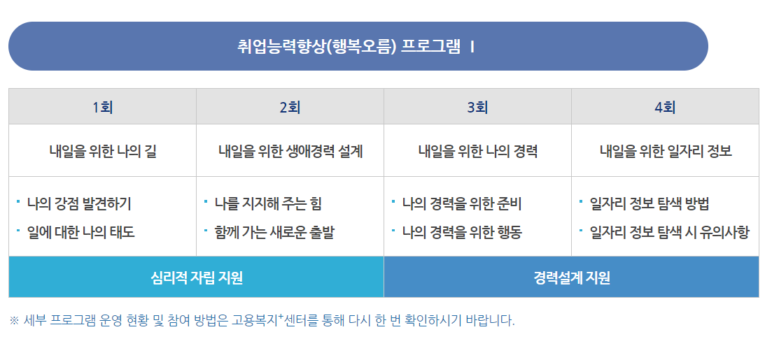 그래서 오늘은 취업능력향상(행복오름) 프로그램에 대해서 알아봤습니다.
