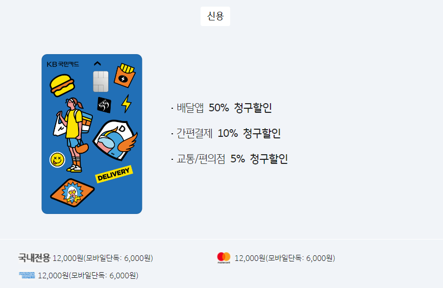 주요혜택 : 배달앱 50%청구할인 / 간편결제 10% 청구할인 / 교통.편의점 5%청구할인