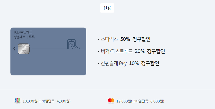 주요 혜택 : 스벅 최대 60% 외식 교통 통신 등 10% 할인