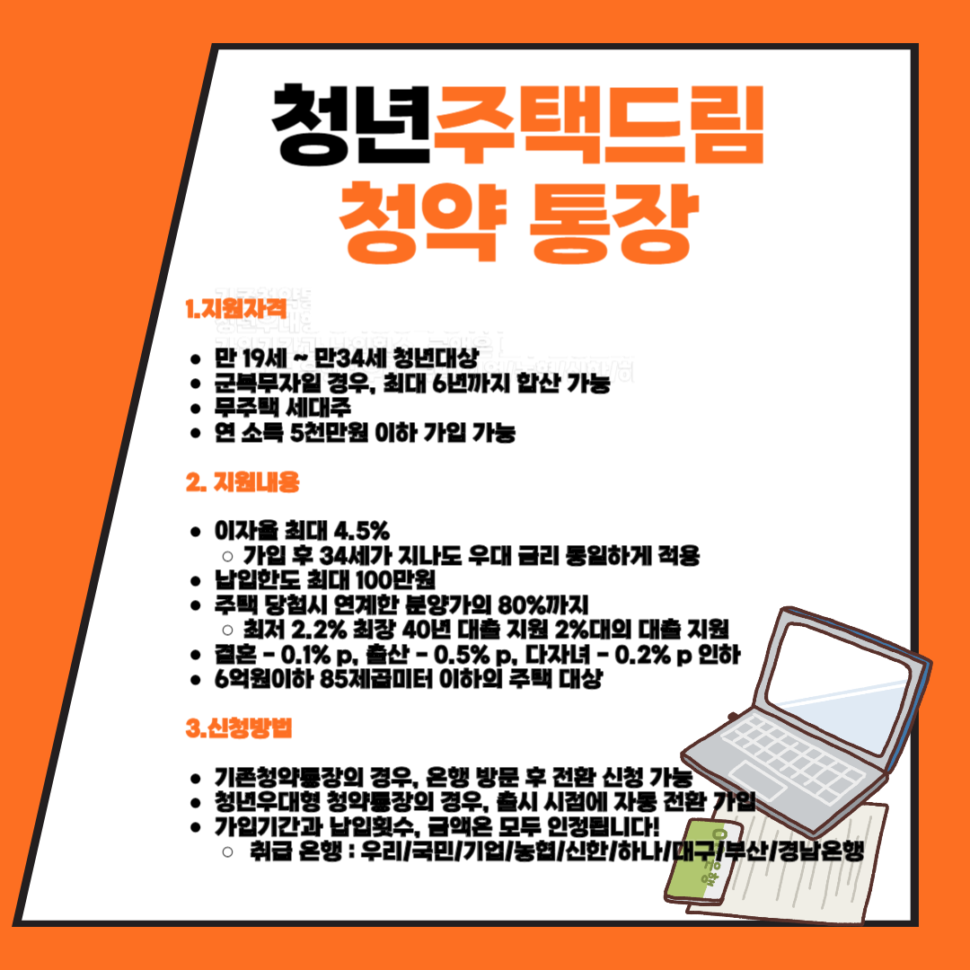 오늘은 청년주택드림 청약통장에 대한 정보를 가지고 왔습니다.