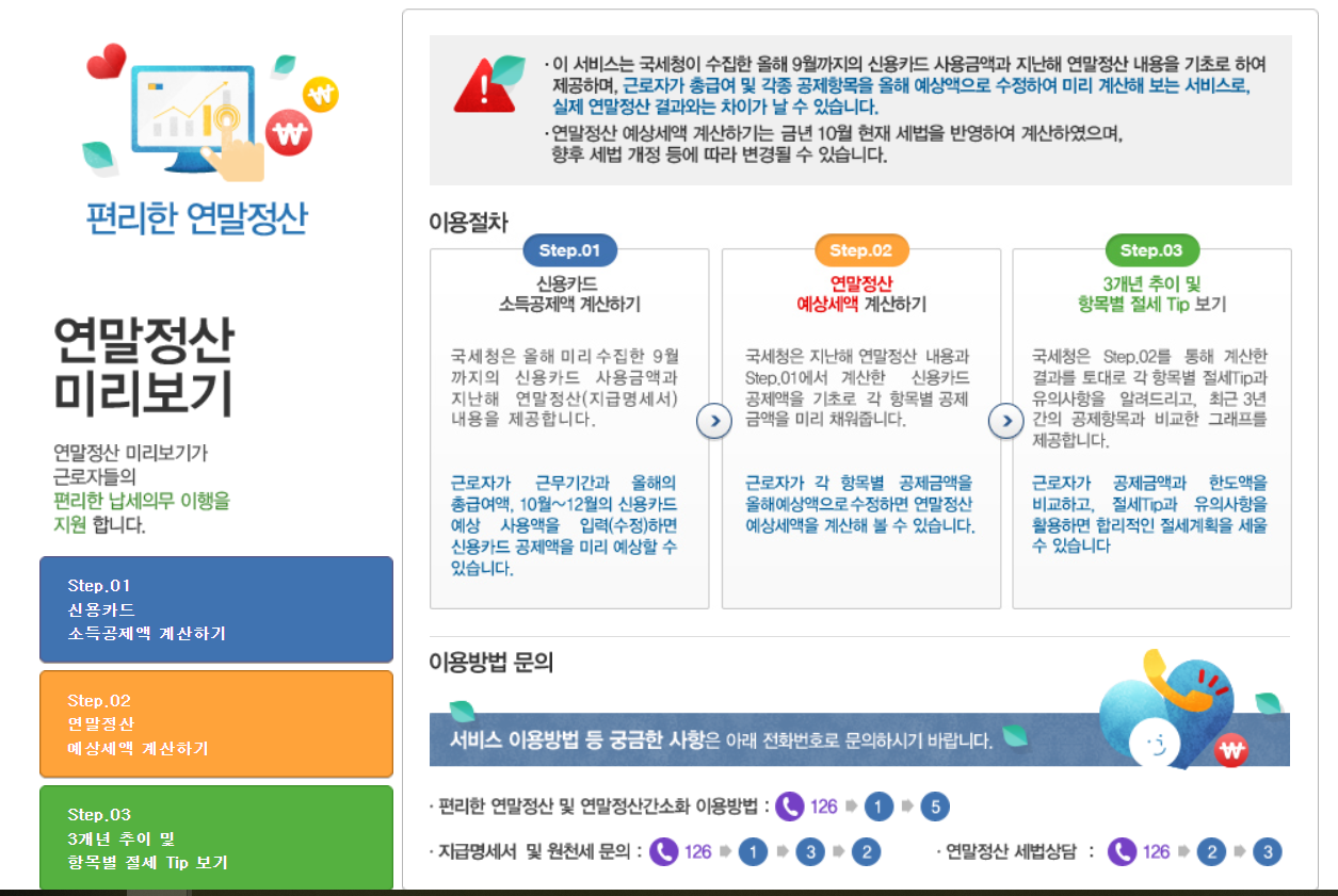근로자가 총급여 및 각종 공제항목을 올해 예상액으로 수정해 미리 계산해 볼 수 있는 서비스로
